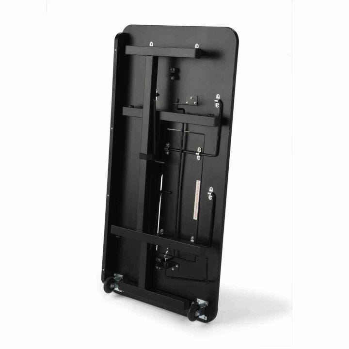 Powerful steel locking legs, equipped with 2 wheels for easy mobility and portability