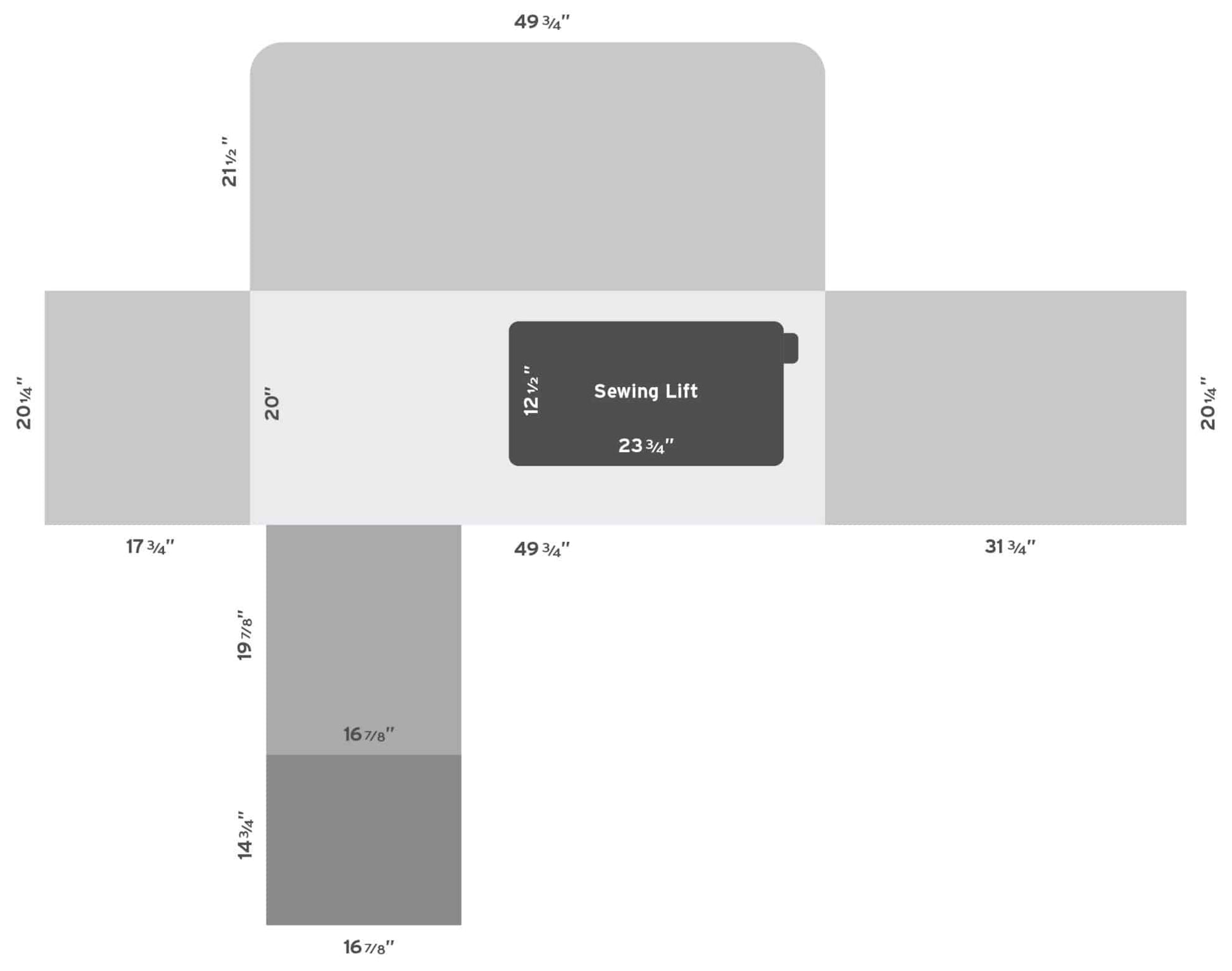• Includes wood panel to place over sewing well, increasing workspace when machine is in storage position