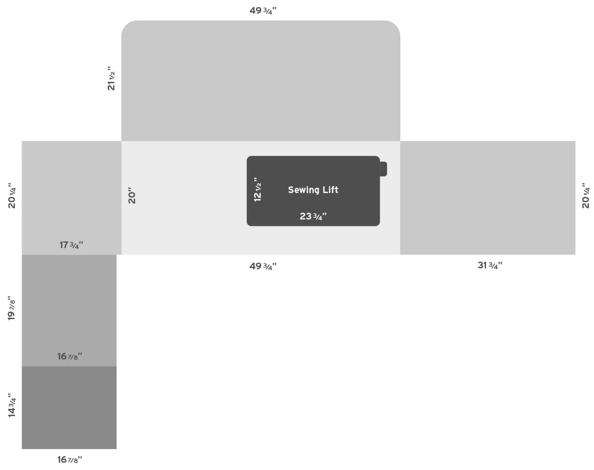 Welcome to your dream sewing studio! Aussie Sewing Cabinet is a signature, full-size sewing cabinet from Kangaroo Sewing Furniture highlighted by over 31 square feet of sewing worksurface and a 3 position hydraulic sewing lift for free arm and flat bed sewing! Aussie features a rolling storage caddy, perfect for storing a serger or other sewing notions, that moves to multiple preset configurations for a customizable workstation. Your large quilting projects will be thanking you in no time! It’s hard to believe, but Aussie collapses to just over 4? x 2? for home-friendly storage… small footprint, big possibilities!