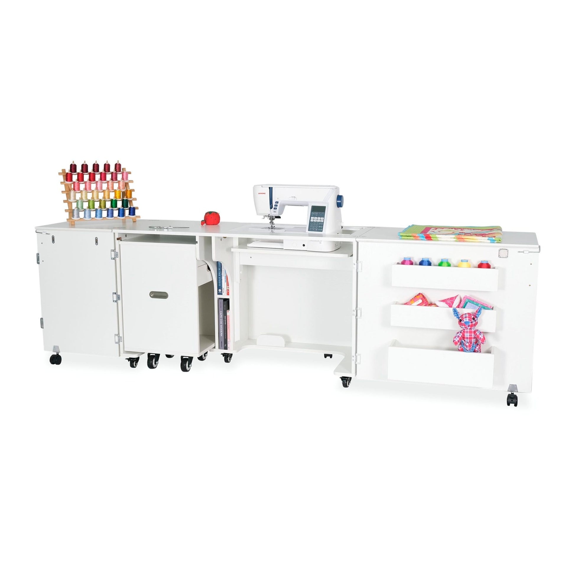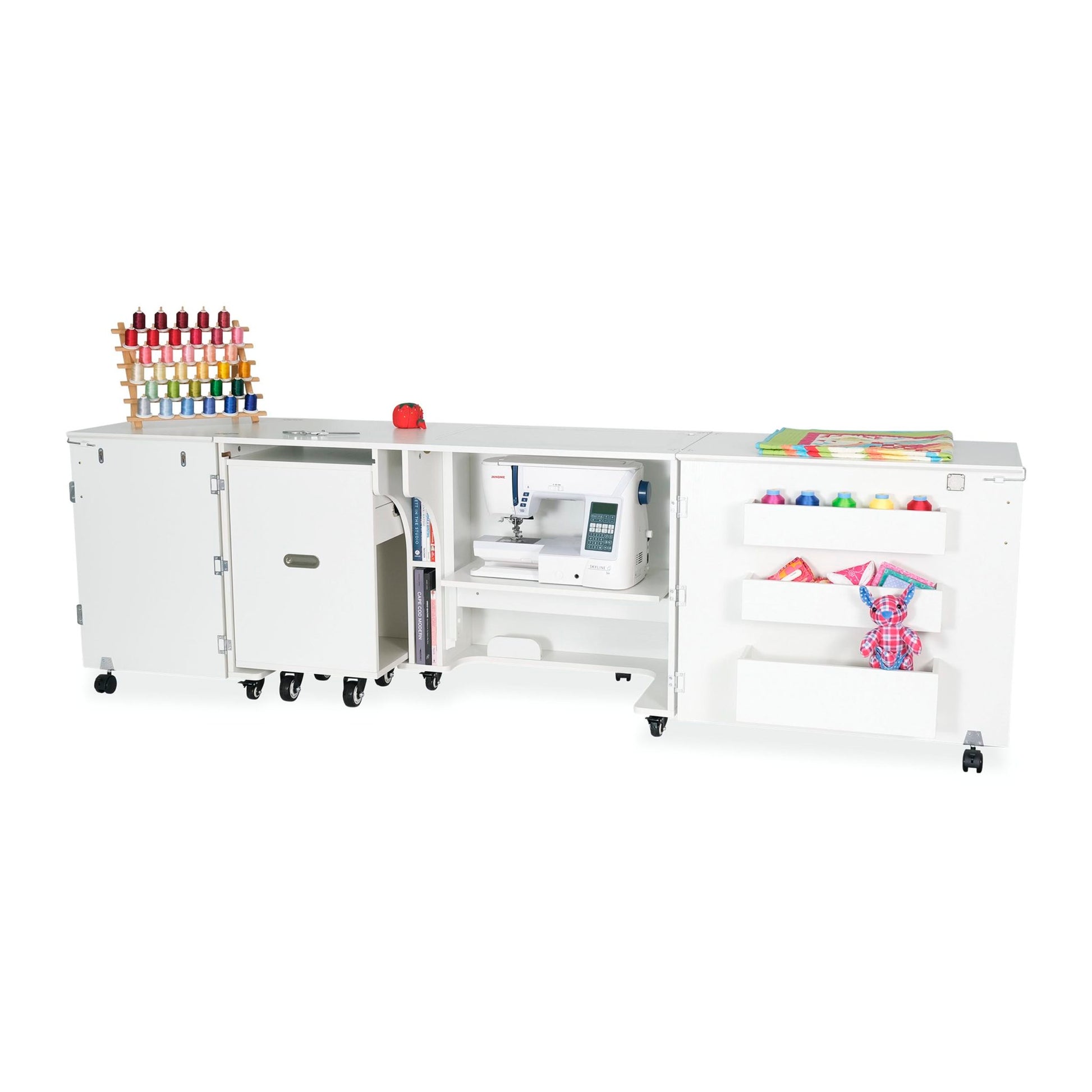 • Caddy includes 2 drawers and capacity to store serger and notions