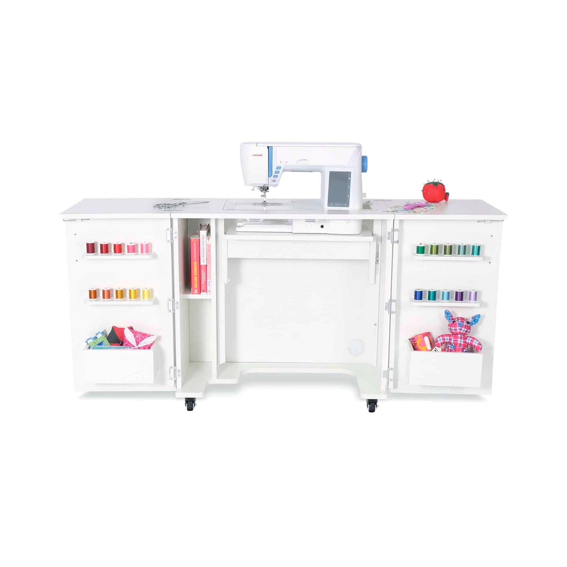 • Door cubbies to store notions, thread and accessories