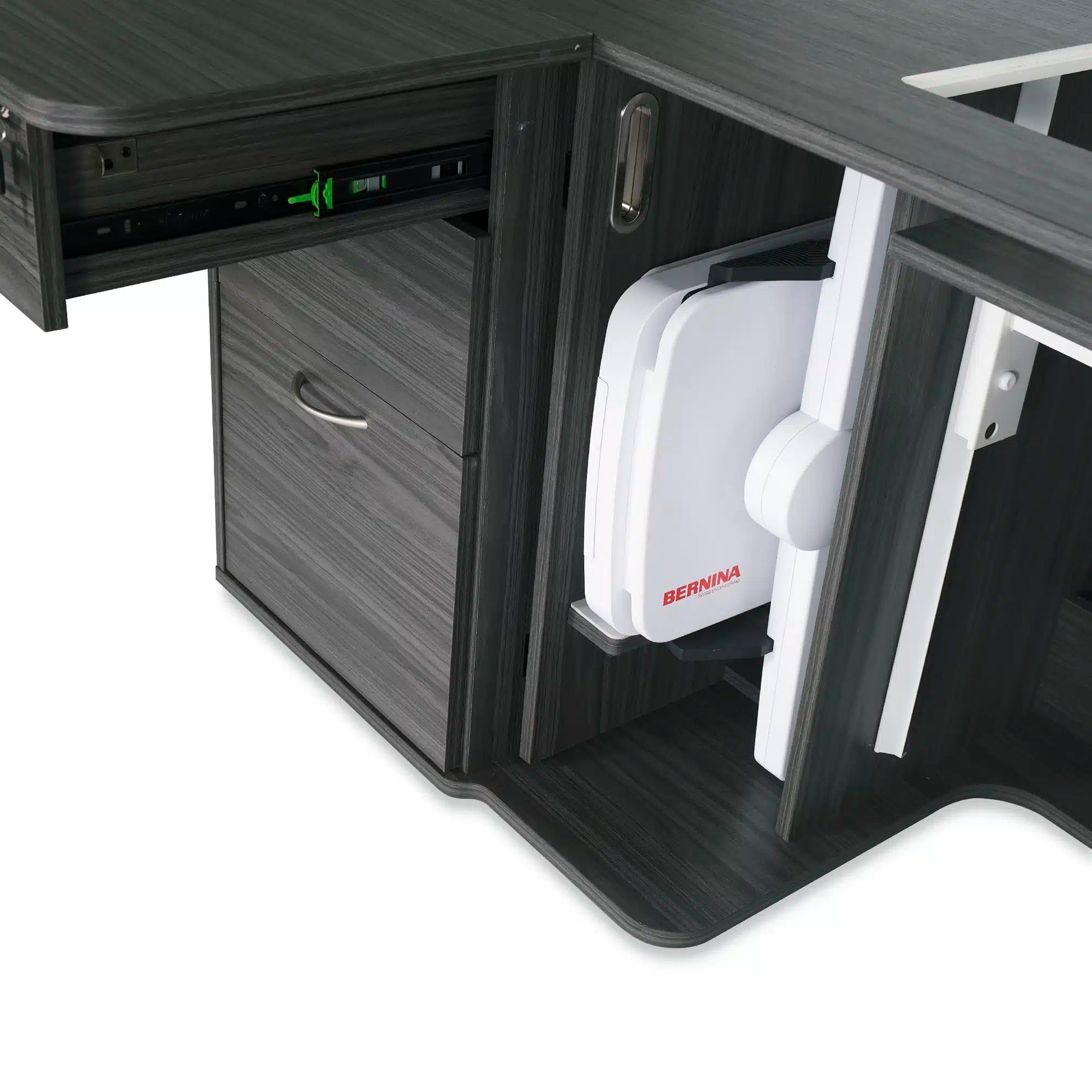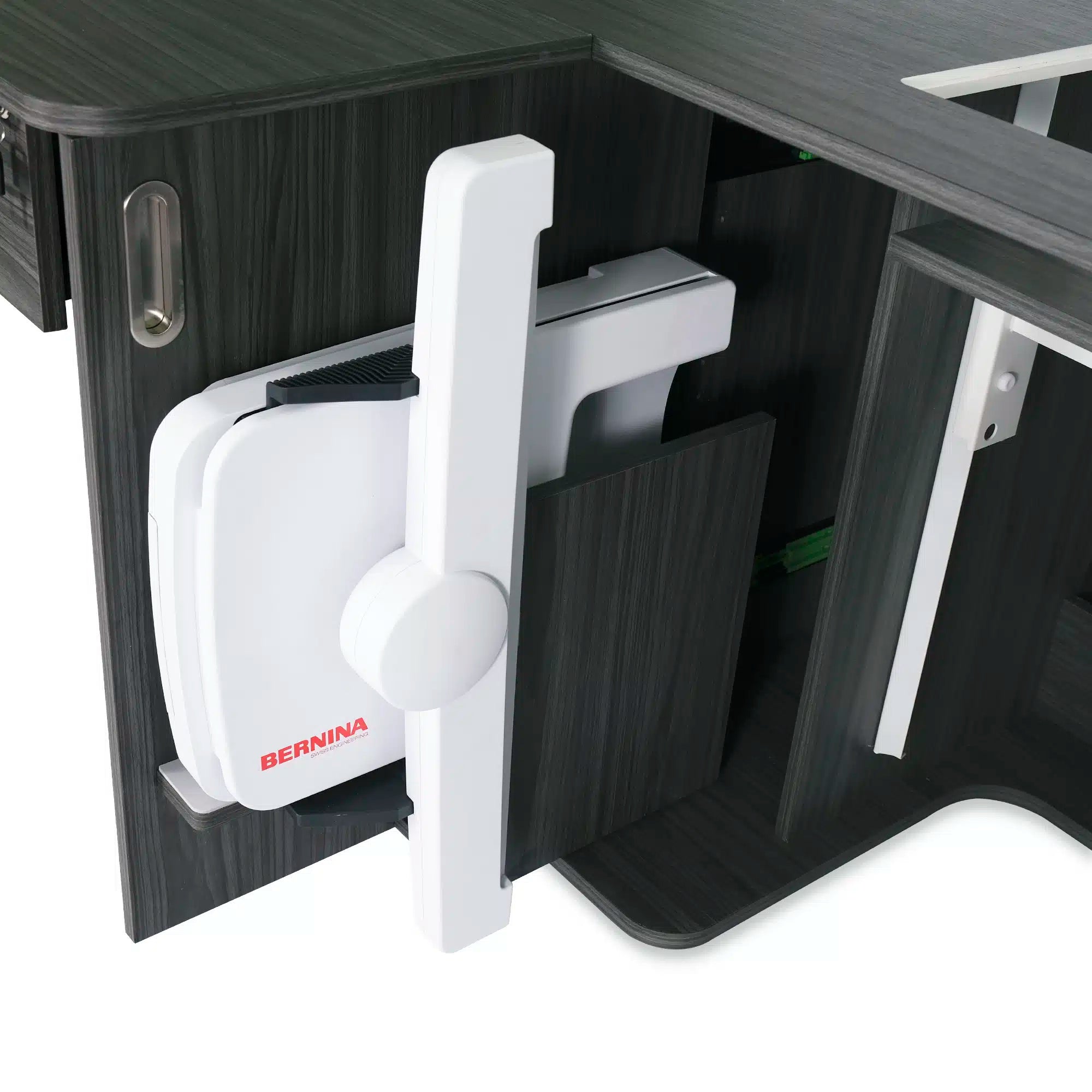 Wouldn’t it be perfect if you could keep your Bernina embroidery arm safely tucked away, but still within arm’s reach and ready for action at a moment’s notice? With the Bernina Embroidery Arm Storage Drawer, that dream becomes a soft-close reality! Designed to nestle perfectly into your Sydney Sewing Cabinet’s center storage cubby, this smart storage feature will accommodate Bernina Emboidery Arm models L and L (SDT).
