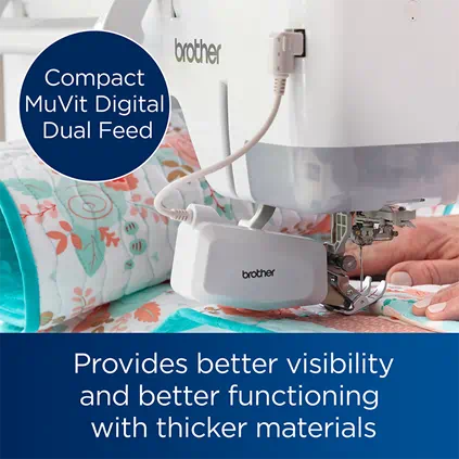 Building on Brother's sterling reputation, the Quilt Club machines are more attractive than ever. The latest addition to the Quilt Club family, the feature-rich Innov-ís BQ3100, is for quiltmaking and general sewing. Combining premium features such as 729 built-in utility and decorative stitches (plus an additional 30 on the included CD), a 7" LCD touchscreen display, and a generous 11.25" workspace, the BQ3100 is designed for quiltmakers and sewists who are dreaming of doing more with their machines. The enhanced Compact MuVit Dual Feed Foot is compatible with over 100 stitch designs in various styles, perfect for quilting and sewing traditionally tricky fabrics such as velvet or plaid. The automatic presser foot lifter and the Pivot Function let you breeze through complex quilting designs without repeated stops to readjust. The decorative stitches benefit from technology like the Back to Beginning key and auto-lockstitch setting, and the 14 one-step auto-size buttonholes are both beautiful and very easy to stitch with the BQ3100. Main Features Compact MuVit Digital Dual Feed- The Compact MuVit Digital Dual Feed gives you better visibility and better functioning with thicker materials. Stitches forward and backward for unprecedented versatility and comes with various stitches chosen specifically to use with the Dual Feed. Computer Compatibility- With a full USB port, the BQ3100 easily accepts USB media for adding or saving additional stitches. Alternatively, use the port to connect a USB mouse (not included) to use with the machine's screen. Connect the BQ3100 to your computer for easy software updates and upgrades. Sew Straight Stitches- When it comes time to quilt, piece, or sew, align rows of decorative stitches in smooth straight lines with the Sew Straight Laser Vision Guide. V-Sonic Pen for Sewing- Touch the fabric with the sensor pen for needle placement, stitch-width setting, and positioning the endpoint of a line of stitches – simply touch and sew. Pivot Function- The presser foot automatically lifts while the needle remains in the fabric for fast and easy cornering and fabric manipulation. Automatic Height Adjuster (AHA)- The AHA feature helps ensure consistent stitch length on all fabric thicknesses by keeping the presser-foot pressure constant regardless of fabric thickness, producing consistent stitch quality across uneven surfaces. Built-in Stitches, Buttonhole Styles, and Fonts- 759 utility and decorative stitches (729 built-in, 30 on CD), 14 one-step auto-size buttonhole styles, and 5 fonts for sewing. My Custom Stitch- Want to create your own stitches and add some personalization? With the My Custom Stitch feature, you can create a stitch, save the stitch, and then stitch it. LED Lighting and Spacious Work Area- With the enhanced LED lighting on the generous 11.25" workspace, you can brighten your fabric with a 10 inch glow around the needle. Color LCD Touchscreen Display- The large 7" display controls the machine via intuitive on-screen icons and allows viewing of on-screen tutorials. Quilters Bundle Deluxe Included- Contains over $500 (MSRP) worth of attachments and add-ons for your BQ machine; this includes the following: A Wide Table, an Open Toe Foot for MuVit, a Stitch in the Ditch Dual Feed Foot, a Dual Feed ¼” Guide Foot, a Dual Feed Quilting Guide, a Couching Dual Feed Foot, and a 2-Spool Thread Stand. Sideways and Directional Sewing- Perfect for trendy decorative mending, the machine sews straight and zigzag stitches not only forward and backward but sideways. In addition to sideways sewing, this machine has the capability to stitch diagonally when using a straight stitch. Advanced Quilt Software Included(While Supplies Last)- This software has 243 Quilt Blocks, ScanNCut DX compatibility, and the ability to save your quilt blocks in FCM format plus so much more! (SAADVQLT) Exclusive Rolling Trolley Set Included(While Supplies Last)- Features a rolling trolley bag and dust cover.(SASEBSEWE)