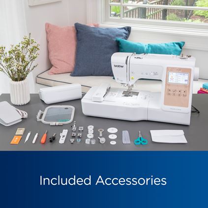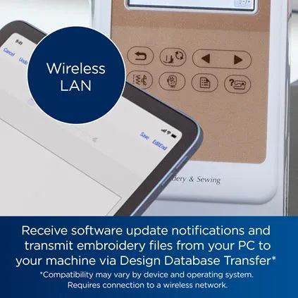 The LB5500 2-in-1 Sewing and Embroidery machine allows you to embroider and sew easily. View the 135 built-in embroidery designs, 103 built-in sewing stitches, and 10 built-in lettering fonts for all your projects on the sharp 3.7" LCD display, which has easy on-screen editing. A sizable 6.4" x 4.0" work area and a generous embroidery area of 4" x 4" will assist in all your DIY projects. When connected to a wireless network (wireless LAN enabled), the LB5500 lets you send files from your PC to your machine via Design Database Transfer¹ (no USB required), so you can send and then stitch! This free downloadable software allows for easy data management for all your designs. You can also create and send designs through PE-Design 11¹/² for added flexibility. A vital feature of the LB5500 is the new Artspira App¹. This new feature has embroidery patterns you can download, plus the ability to create embroidery patterns by drawing on your mobile device. The drawing tools embedded in the app include a pen (single/zigzag), shapes, and an eraser. You can draw line-art inspired designs up to 4" x 4" (100mm x 100mm) and then transfer them to your LB5500 wirelessly. The Artspira App¹ lets you share your creations on many social media platforms as well. The LB5500 has an advanced needle threading system and an automatic thread cutter, sewing speeds up to 710 spm, and legendary Brother reliability, so creating your next customized project can be effortless. With a 6.4" x 4.0" work area and a maximum embroidery area of 4" x 4", making children's clothes, doing minor apparel repairs, and even creating warm home décor can be achieved. Main Features Sewing and Embroidery in One The LB5500 is the ideal machine to start your sewing and embroidery journey. With a stylish cosmetic, a host of built-in designs, fonts, patterns, and state-of-the-art features, taking that first sewing and embroidery step just got easier with the LB5500. Wireless LAN With wireless LAN enabled, the LB5500 will send you software update notifications and will let you to transmit embroidery files from your PC to your machine via the free downloadable software Design Database Transfer¹ (no USB required). This allows for easy data management for all your designs and projects. Artspira App¹ Draw your next project on the Artspira App¹. With an array of patterns and cut data you can download, plus the ability to make embroidery patterns by drawing on your mobile device and then transferring them to your LB5500 wirelessly, the Artspira App will have you creating on the go. Included Accessories Zigzag foot “J” (on machine), Monogramming foot “N”, Overcasting foot “G”, Zipper foot “I”, Blind stitch foot “R”, Button fitting foot “M”, Buttonhole foot “A”, Embroidery foot “Q”, Needle set, Twin needle, Bobbin (2) (One bobbin is on machine), Pre-wound bobbin (3) (60 weight white embroidery bobbin thread), Bobbin clip (4), Seam ripper, Scissors, Cleaning brush, Eyelet punch, Screwdriver, Disc-shaped screwdriver, Extra spool pin, Spool cap (large), Spool cap (medium) (on machine), Spool cap (small), Thread spool insert (mini king thread spool), Spool net, Bobbin case (on machine), Foot controller, Embroidery frame set (medium), 10 cm (H) × 10 cm (W) (4 inches (H) × 4 inches (W)), Accessory bag, Dust cover, Operation Manual, Quick Reference Guide, Embroidery Design Guide. Design Database Transfer¹ The free downloadable software Design Database Transfer¹ enables you to send embroidery designs from your PC to your LB5500 while connected to your wireless network (without the use of a USB!). Generous Workspace Starting with a 3.7” LCD color display screen, a 4” x 4” maximum embroidery area, and 6.4” x 4.0” work area, you’ll have plenty of room for your next project. The Sewing Side The LB5500 comes with 103 built-in sewing stitches, 10 styles of one step auto-size buttonholes, and the Advanced Needle Threading system for all your sewing needs. LCD Display You can do simple on-screen editing on the sharp, 3.7” LCD color display screen. Embroidery Patterns The LB5500 has 75 Motif designs and 60 (30 x 2 types) of Alphabet and frame designs - a total of 135 built-in designs of your choosing. Compatible with iBroidery² Browse the vast library of over 5,000 embroidery designs on the Brother iBroidery platform²