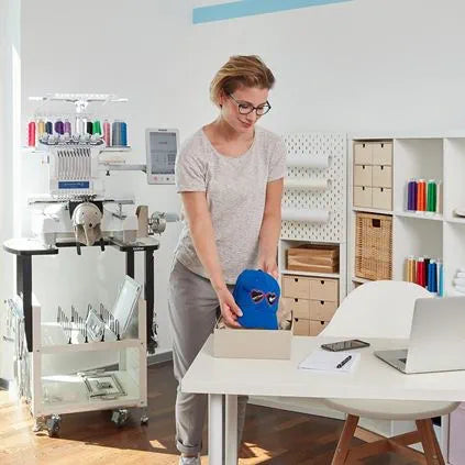Are you ready to crush your creative goals? Good. We are, too. These 10 needles have never looked so good or been more productive. There’s also a huge work area that’s ready for you to think big – along with a library of built-in designs that’ll help keep those creative juices flowing. Ready for more? How about MORE fonts, MORE editing features and MORE technology that will take your projects to places you’ve only dreamed of? The PR1055X is a creative powerhouse that’s an incredible workhorse, too. Time is money – so we made it easy to get right down to business with features like 10-needle speed, auto-threading, and color sorting. There’s no downtime with an important notification system, so you can be super productive. It’s portable, too, so you can take your business wherever opportunity leads you. Plus, there are optional accessories like a Flat Brim Cap Frame to expand your product line. Is business booming? With wireless LAN Connectivity and optional PE-DESIGN 11 software, you can connect up to 10 machines and grow your side hustle into a full-fledged business operation. It’s not all business, because let’s face it - this all started with your creative side. And this machine is made to create. Main Features Expansive Embroidery Area of 8" x 14" Perfect for large projects, including quilts and jacket backs. Includes four sizes of embroidery frames: 8" x 14", 5" x 7", 4" x 4", and 1.5" x 2". The machine will automatically detect the size of the hoop needed. Auto Split Sashing Create beautiful sashing and border patterns sized perfectly for your quilt, up to 118" x 118"! Patterns are split automatically for your selected hoop. Choose from 20 different motifs. Expand your creative output by selecting from five two-color quilting sash designs,which are perfect for creating eye-catching,colorful borders. Wireless LAN Connectivity With wireless LAN connectivity, keep track of your embroidery with the My Stitch Monitor mobile app on your iOS or Android™ device. With wireless LAN connectivity and PE-DESIGN 11 software*, you can link as many as 10 machines without a cable. Built-in Embroidery Designs and Fonts Explore 1,184 built-in embroidery designs including 140 frame pattern combinations, 40 size-adjustable embroidery lettering fonts, and 14 monogramming font styles. High-Speed Background Scanning It’s like having a built-in camera and scanner! The ability to scan the entire embroidery area provides virtually endless creative options and helps ensure that all your projects are perfect. Precisely place your design exactly where you want it every time. Just scan your fabric or garment, preview your design on screen, and you’re ready to embroider. It also works with the optional cap and cylinder frames for tight spaces. With fast scanning speeds, you can spend more time creating, and less time waiting. Virtual Design Preview Get a live, real-time camera view of the needle area and see your embroidery design superimposed on your fabric – no scanning. Also, scan your fabric or garment, preview your design on screen, and you’re ready to embroider. It works with the optional cap and cylinder frames for tight spaces. Embroidery Design Connection by InnoveEye Plus Technology Thanks to the lnnovEye Plus Technology, embroidery design connection is easy and more precise. Combined with the Snowman Embroidery Positioning Marker, you can reposition your design many times in many directions. Perfect for aligning designs for borders and quilt blocks. Grid Function When the Snowman function isn’t appropriate, achieve precise embroidery placement with the built-in grid function. Designed to work in conjunction with the InnovEye Plus Technology, use the grid function to manually align designs. My Design Center Enhancements Enjoy features like custom draw, inside and outside auto stipple and fill patterns, and 26 new decorative fill patterns. Embroidery preview mode is now 40% wider than previous models. Enhanced Embroidery Editing Elevate your embroidery with features like the no sew button, color sort option, alignment of text, group and ungroup and much more! Large 10.1" Built-in High Definition LCD Display View your creations in a class-leading crisp, vivid color LCD display. Easily navigate with the scrolling menu and large, crystal clear icons. Expandable Library of Built-in Tutorial Videos Built-in HD tutorials make learning easy! View 29 tutorial videos directly on the high-definition LCD display, or stream your own creations using the industry standard MP4 format. Zoom and Adjustment Features View your creations in crisp, vivid color and watch them become larger than life with the new zoom function of up to 1600% within My Design Center and up to 200% in other modes. Easily adjust your design by rotating in 1 degree increments. 10- Needle Auto Threading Makes threading simple! As the only multi-needle machine with a built-in automatic needle threading system, you’ll thread each needle in seconds – with just the touch of a button! Artspira Mobile App - where art and inspiration meet! The Artspira Mobile App will have you creating on the go. With access to embroidery and cutting designs and the ability to make embroidery patterns by drawing on your mobile device, there's no limit to your next project.