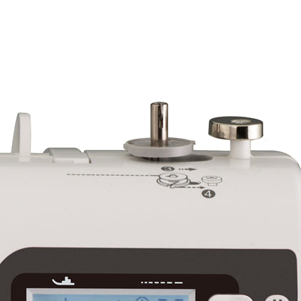 This machine features an automatic bobbin winding system that produces an evenly wound bobbin for optimal sewing. The clear-view bobbin cover allow you to see when the bobbin is running low on thread