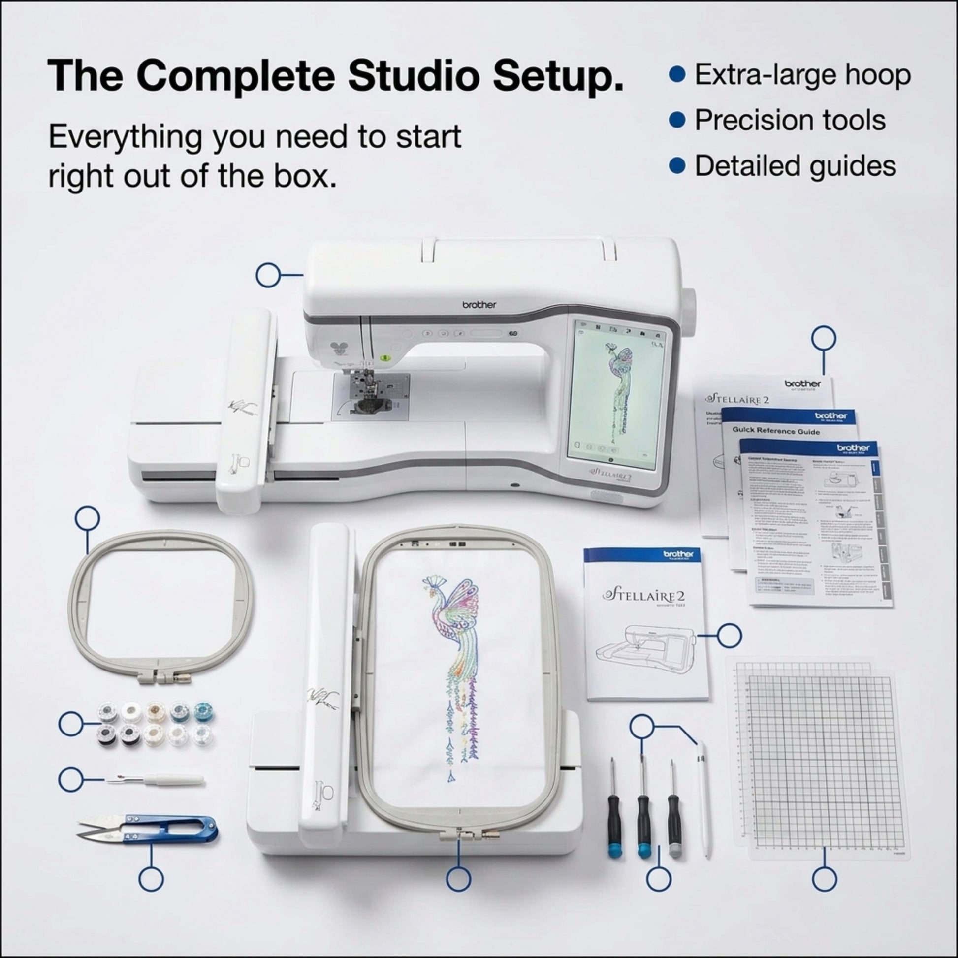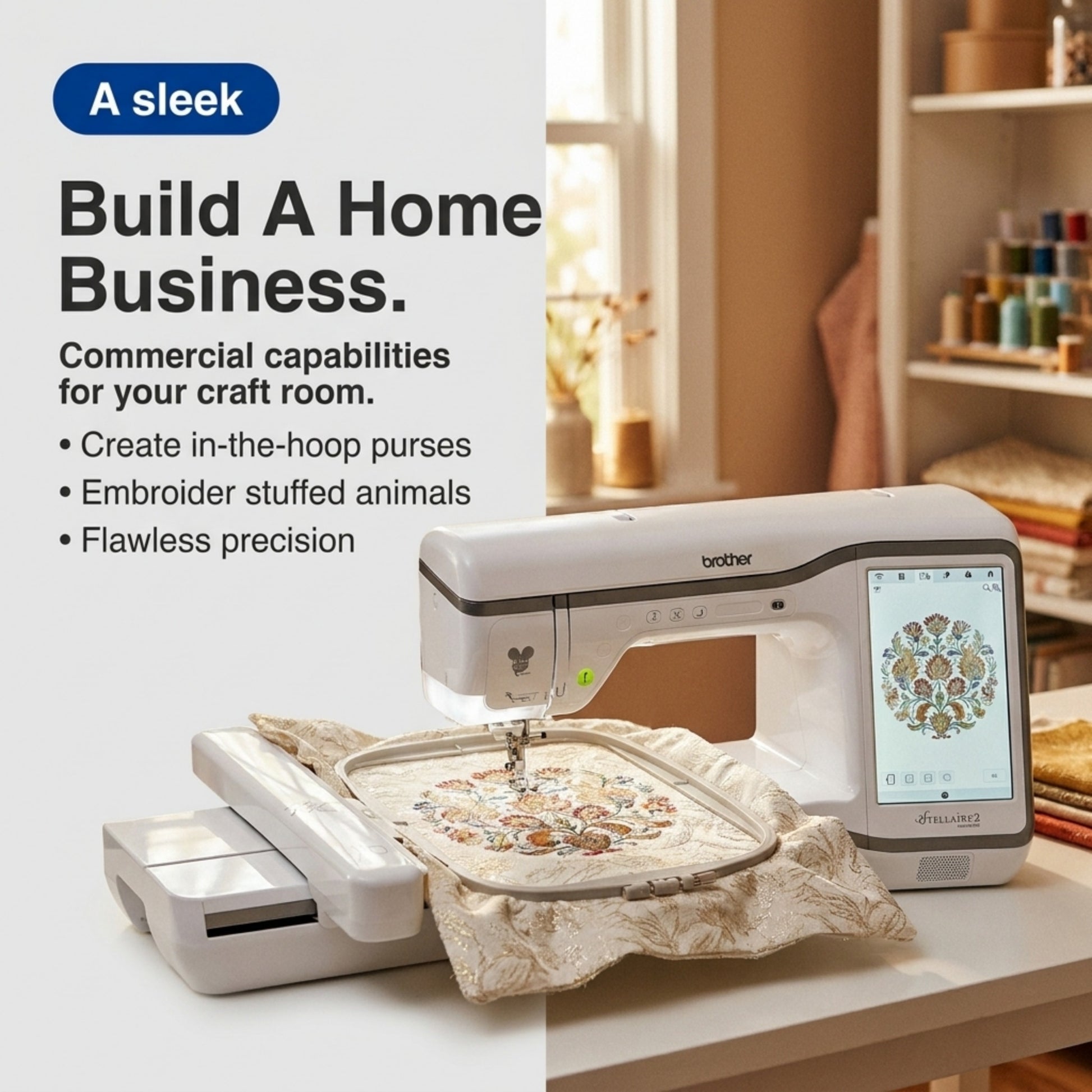 The Stellaire 2 series from Brother, featuring the Innov-ís XJ2 sewing, embroidery and quilting machine! Brother continues their exceptional reputation as go-to machines for hobbyists, makers, and budding entrepreneurs for a wide variety of home and business based projects.With an impressive combination of cutting-edge technology, luxury features, and inspiring designs, the Stellaire 2 series of machines will elevate your sewing, embroidery, and quilting skills.