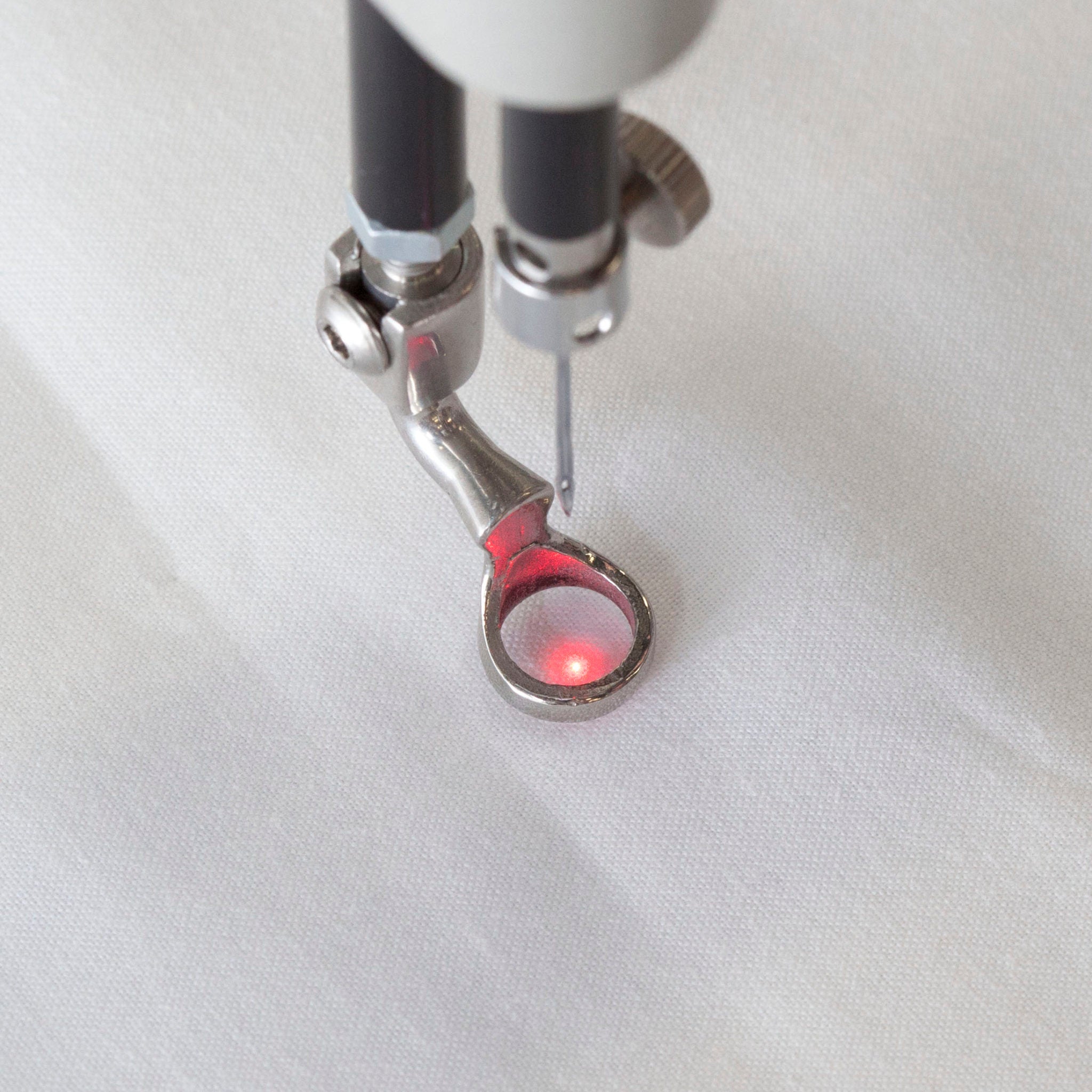 The Needle Laser Accessory provides a guide for accurate needle placement at the start or end of a quilting design. The laser light is adjustable for precise alignment with the machine needle. Compatible with most longarm machines with USB ports at the front of the machine. If no port is available at the front of the machine, this accessory can also be installed on other longarm or domestic machines with the addition of a USB 2.0 wall charger and USB 2.0 Type-A male to female extender cable (not included).