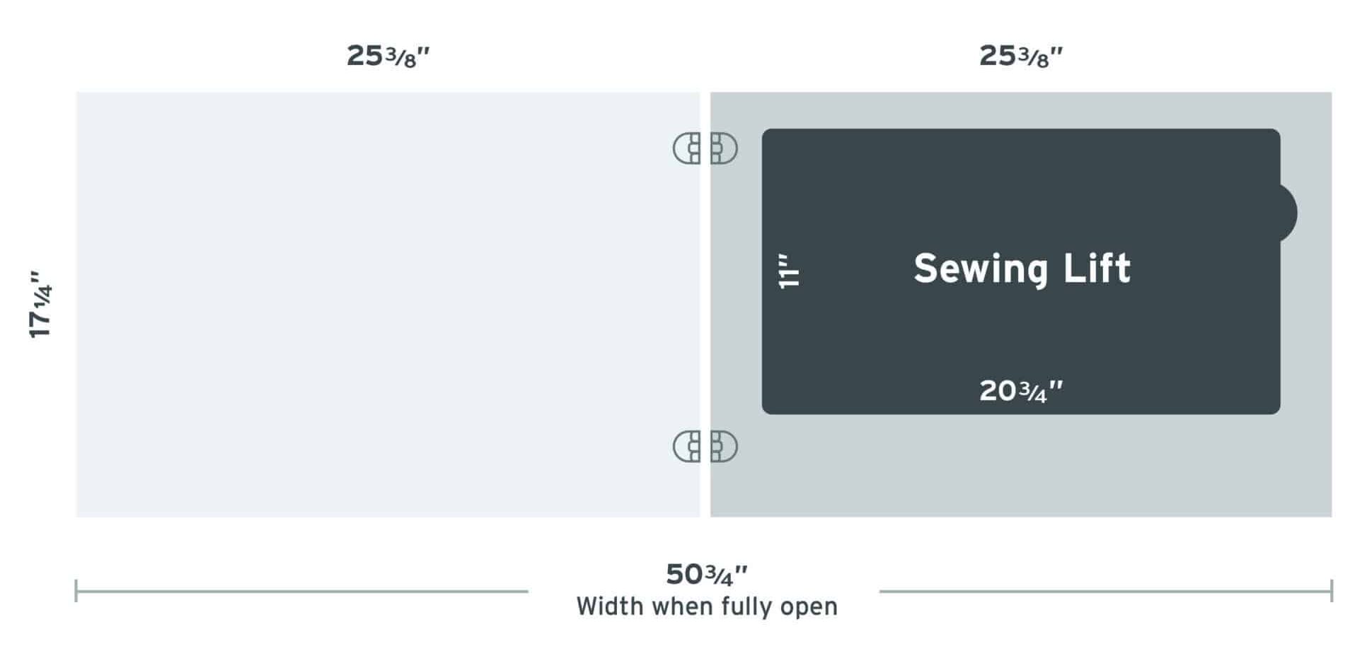 • Large lift opening accommodates most standard sewing machines on the market, up to 55lb