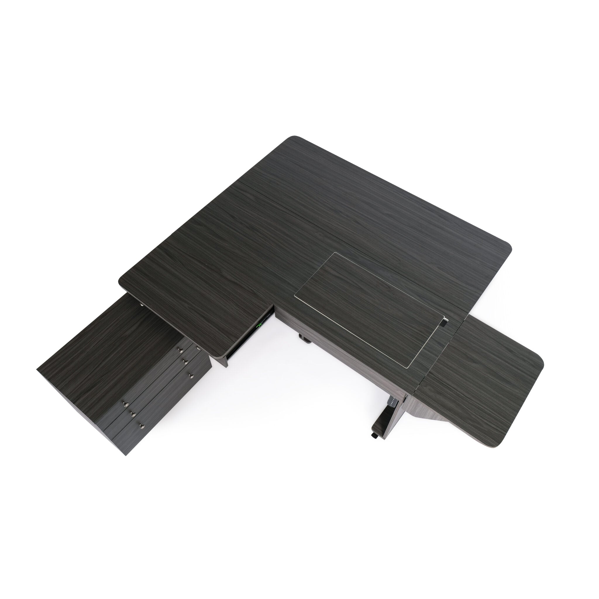 - Large top drawer includes removable cover to create additional workspace