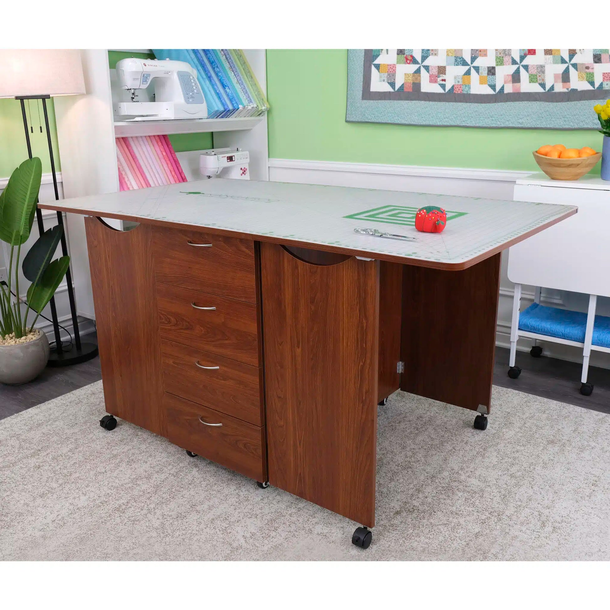 Cutting table leaves fold into compact space (20? x 40?) to fit in any room when not in use