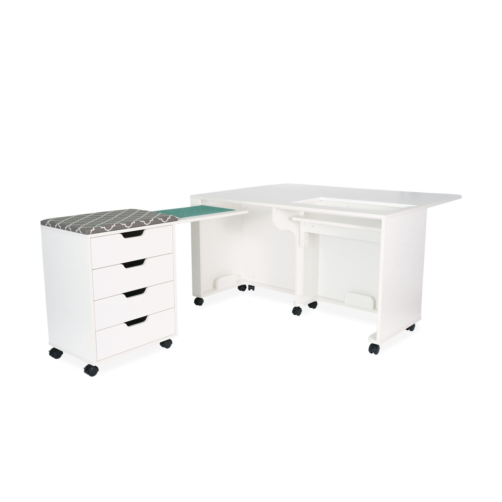 • Expandable caddy provides ironing, cutting workspace and storage for notions
