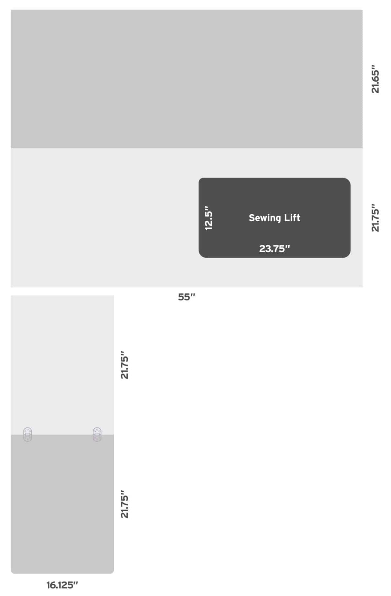 •Large lift opening accommodates most standard sewing machines on the market, up to 55lb